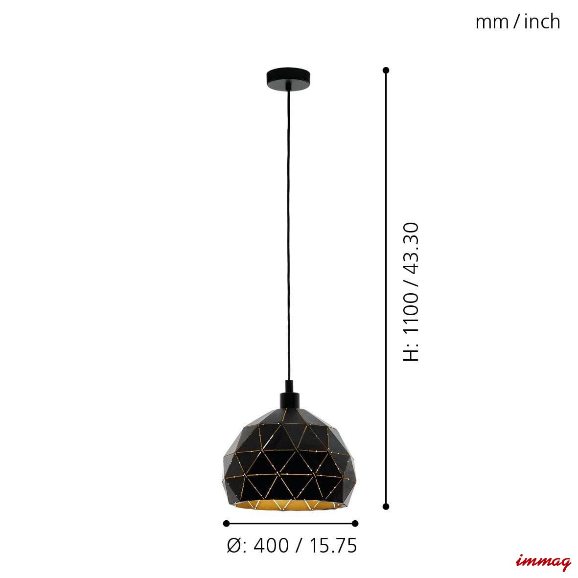 ROCCAFORTE 97841 lampa wiszaca czarno-złota EGLO