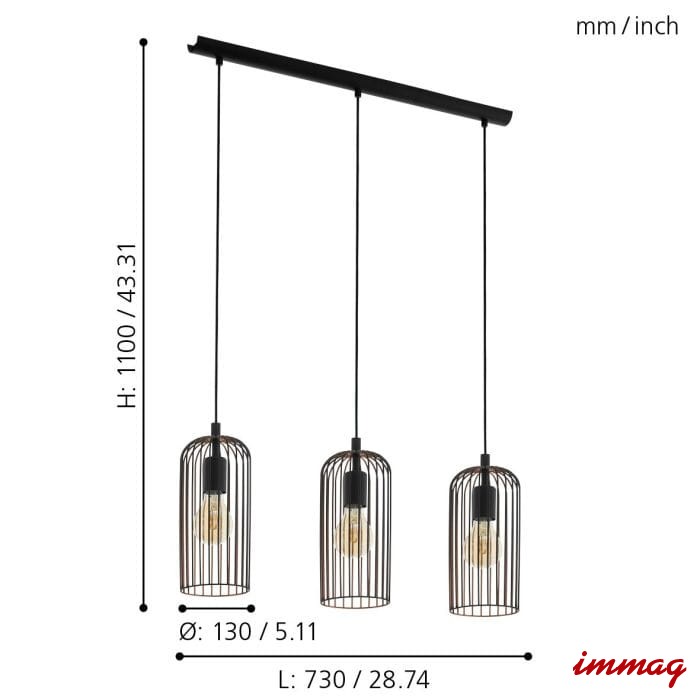 ROCCAMENA 49645 lampa wisząca czarno-miedziana EGLO