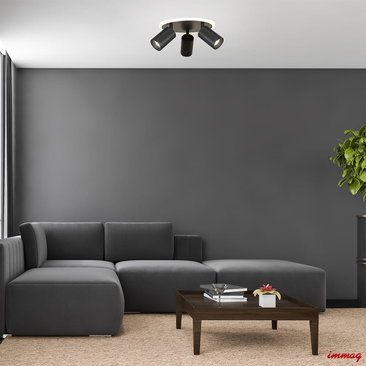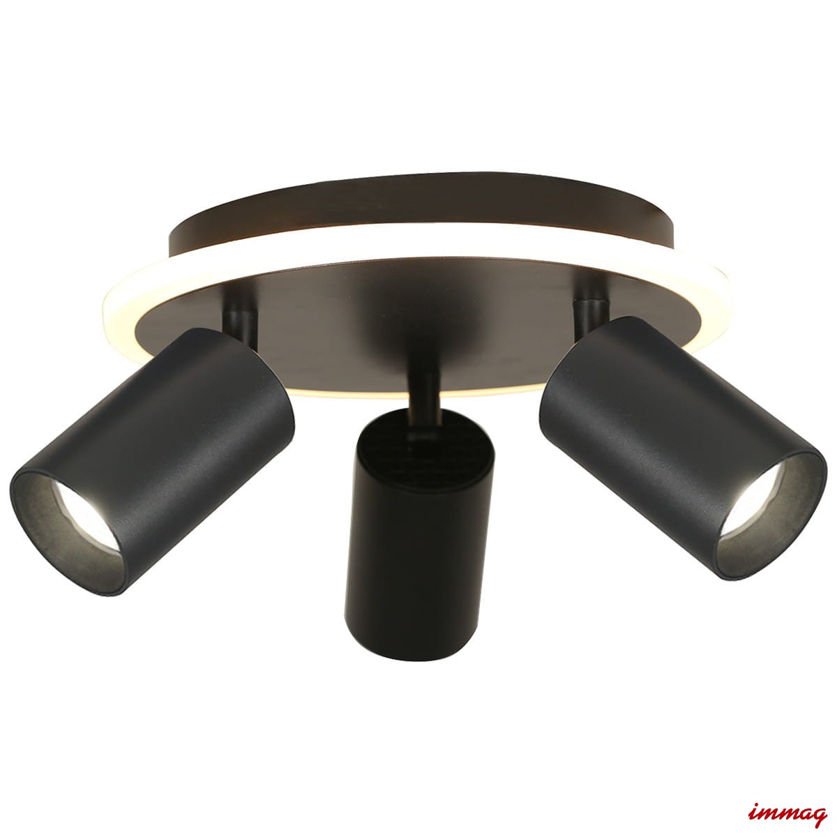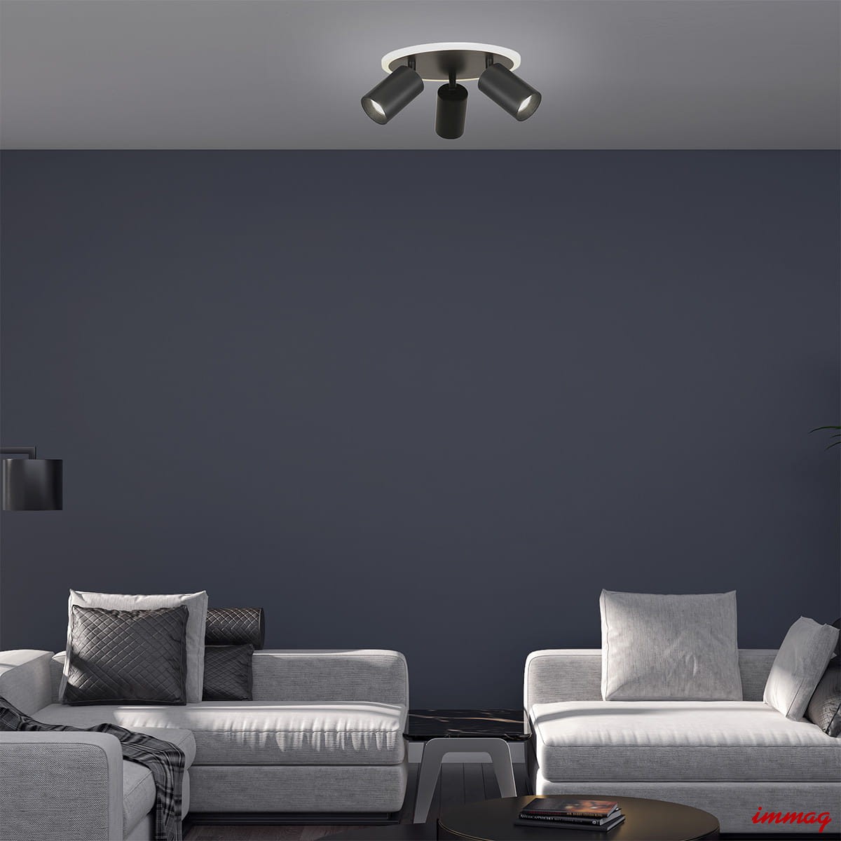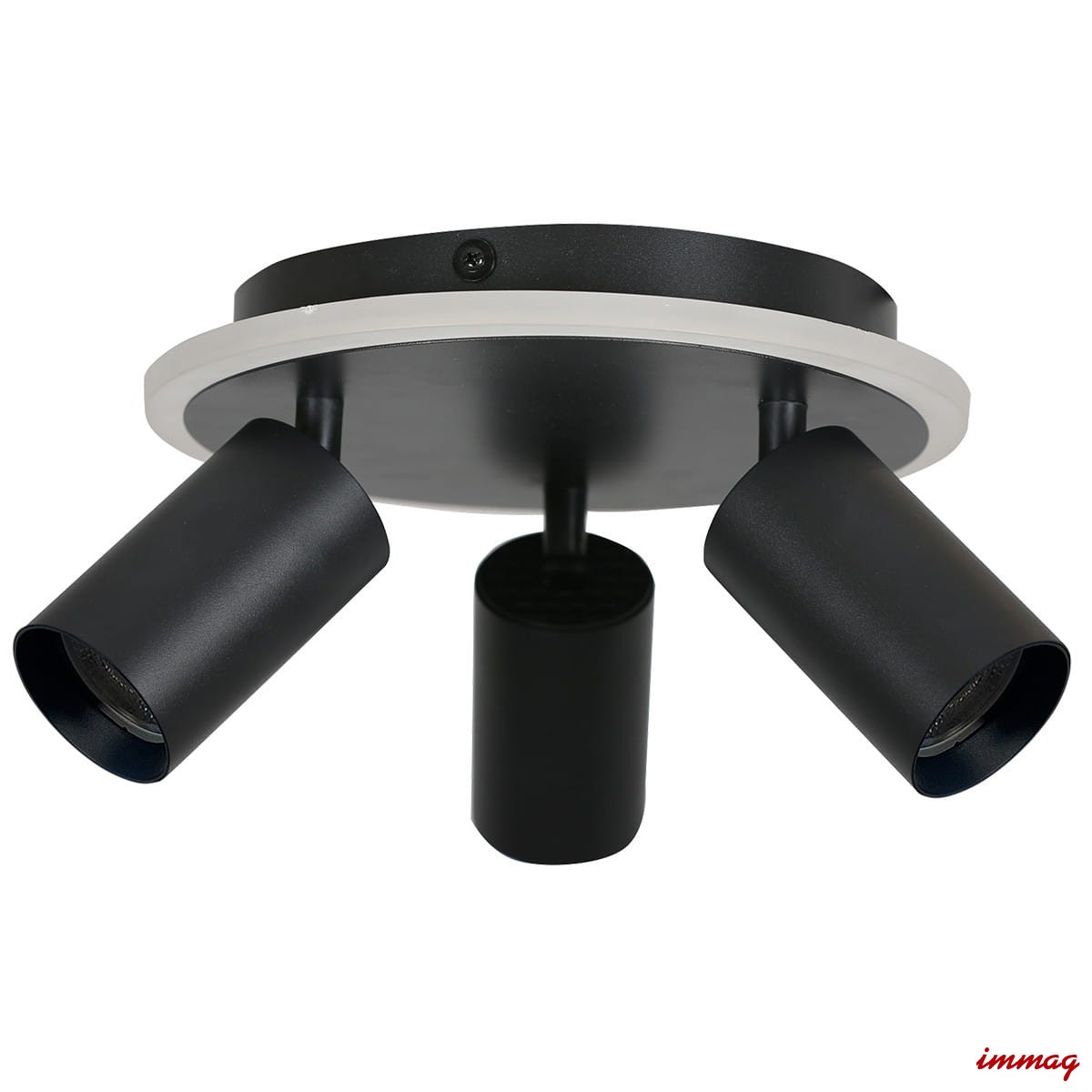 Plafon Parma 3 został wykonany z czarnego metalu. Posiada trzy ruchome reflektorki z wymiennymi obręczami, do wyboru mamy czarne lub złote obręcze (obie wersje znajdują się w zestawie). Regulacja kąta nachylenia reflektorków sprawia, że można ustawić kierunek padania światła dokładnie w wymaganym kierunku, np. na biurko. Plafon posiada miejsce na żarówki o gwincie GU10 oraz wbudowane światło LED o zmiennej barwie światła CCT, co oznacza że można ustawić dowolną barwę światła LED od ciepłej poprzez neutralną, aż po zimną. Barwę światła ustawia się przed montażem w podsufitce lampy.