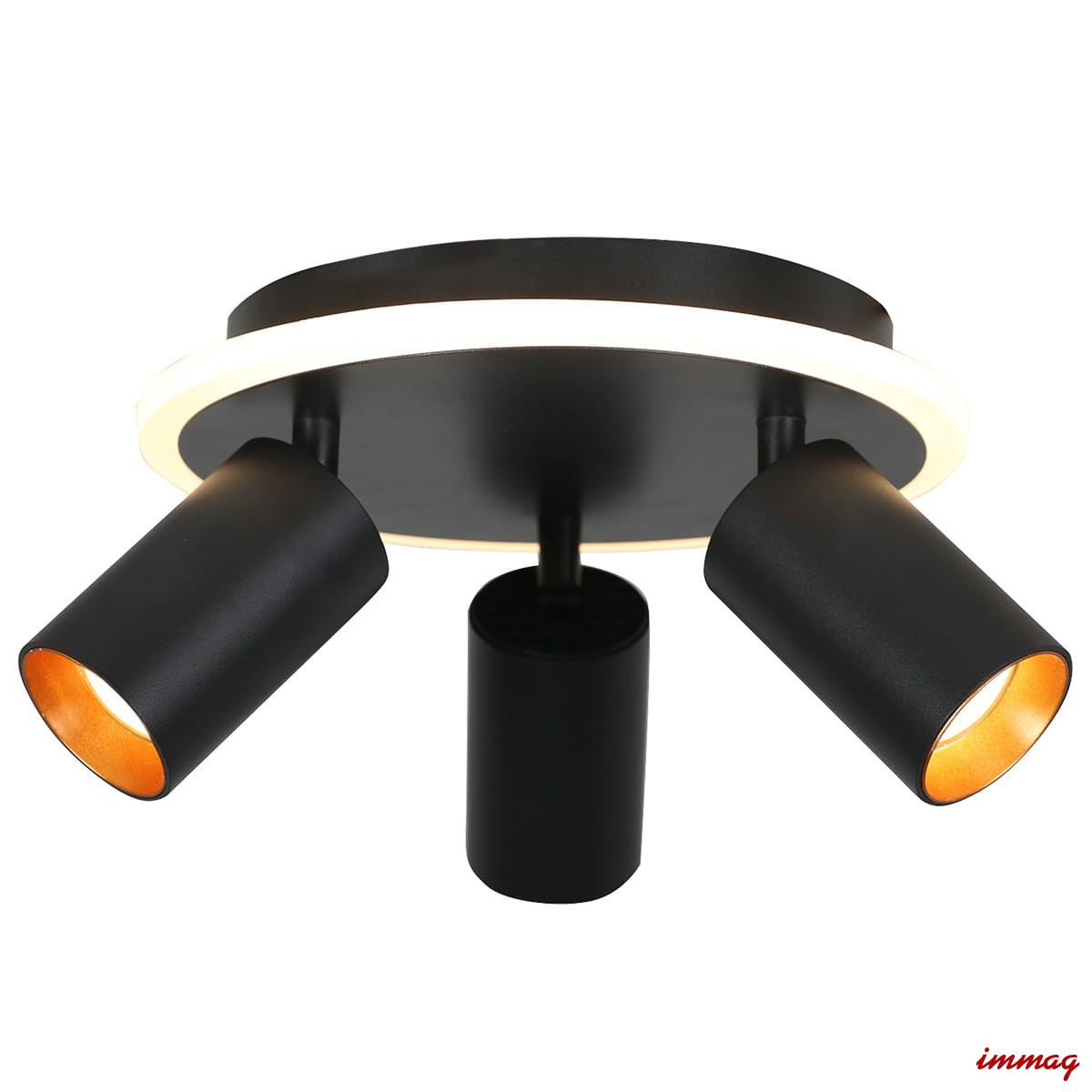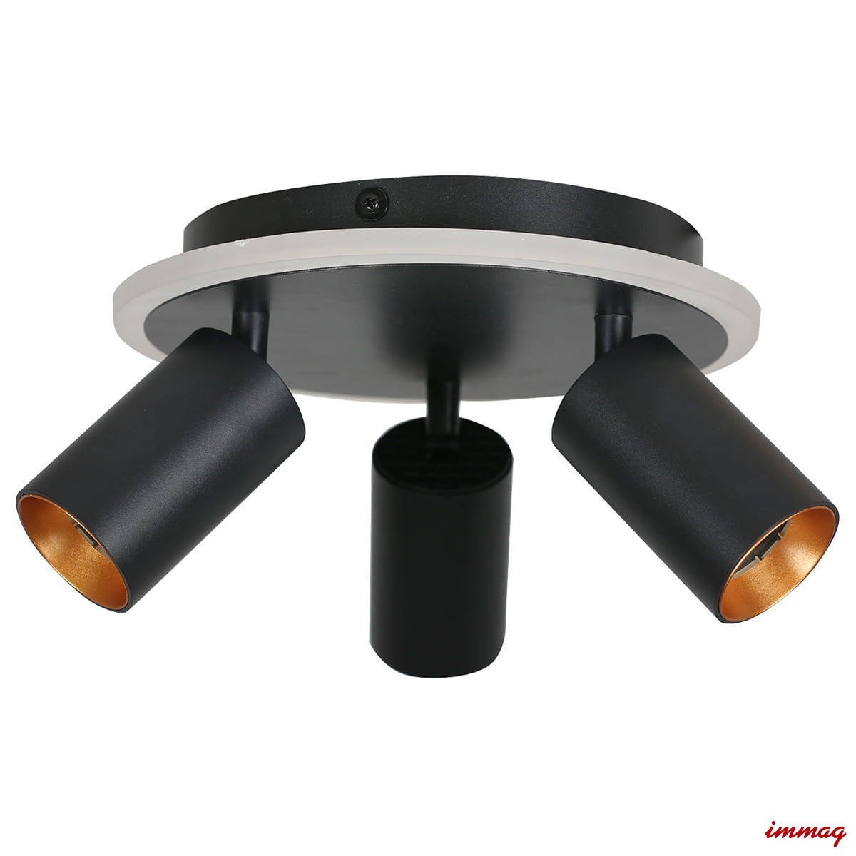 Materiały: Plafon Parma 3 wykonany jest z metalu w czarnym kolorze, posiada dwa rodzaje obręczy wewnętrznych, czarne i złote.