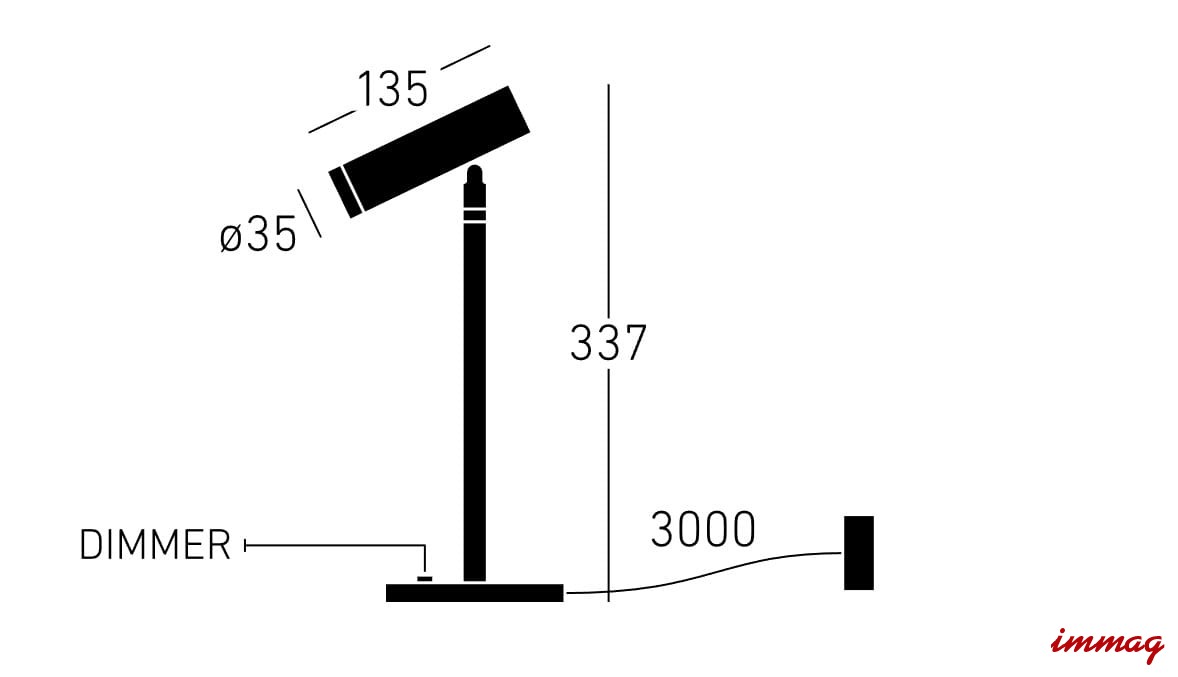 Wymiary : wysokość podstawy 337 cm , długość reflektora 13,5 cm , średnica reflektora 3,5 cm