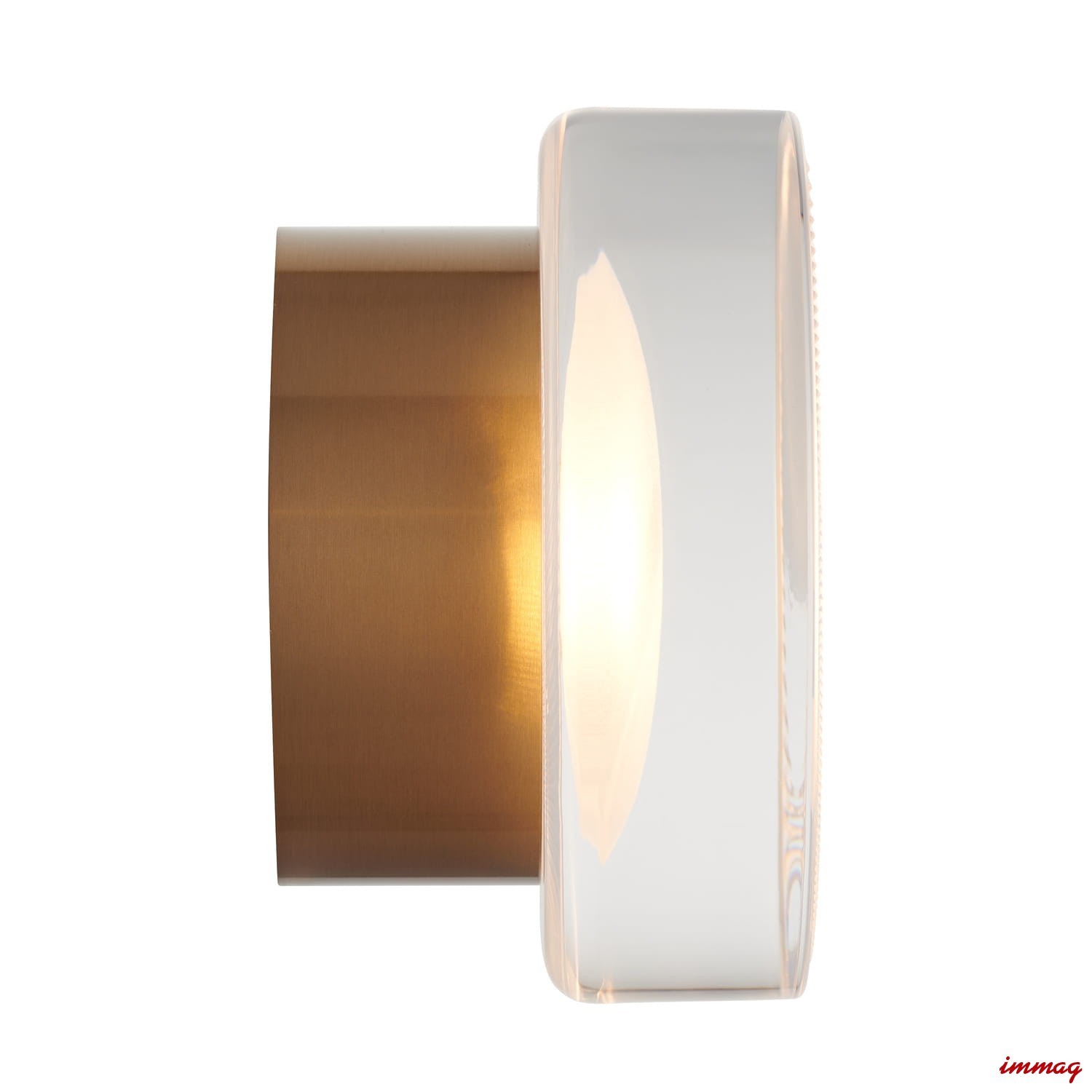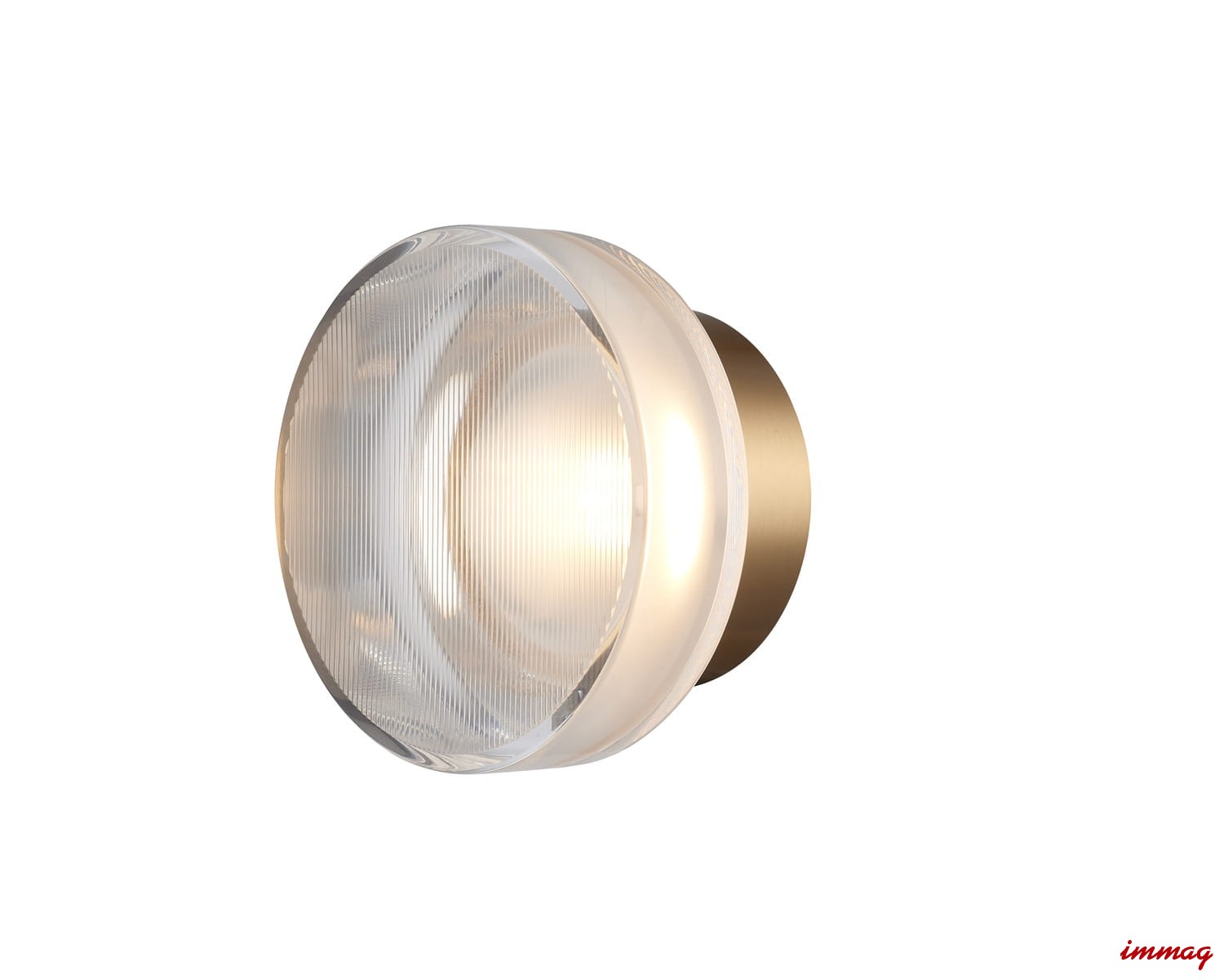 Stylowy kinkiet ścienny z transparentnego, fakturowanego akrylu i błyszczącego złota – idealne oświetlenie akcentowe do eleganckich wnętrz, które łączy luksus z subtelną okrągłą formą.