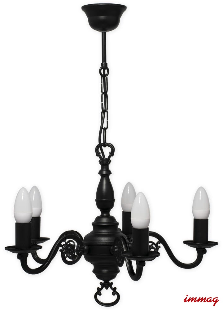 Świecznik żyrandol na 5 żarówek czarny matowy 385 W5 CZA