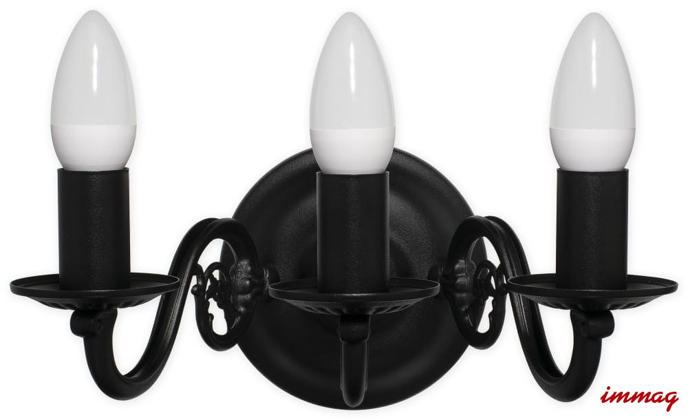 Świecznik kinkiet na 3 żarówki czarny matowy 382 K3 CZA