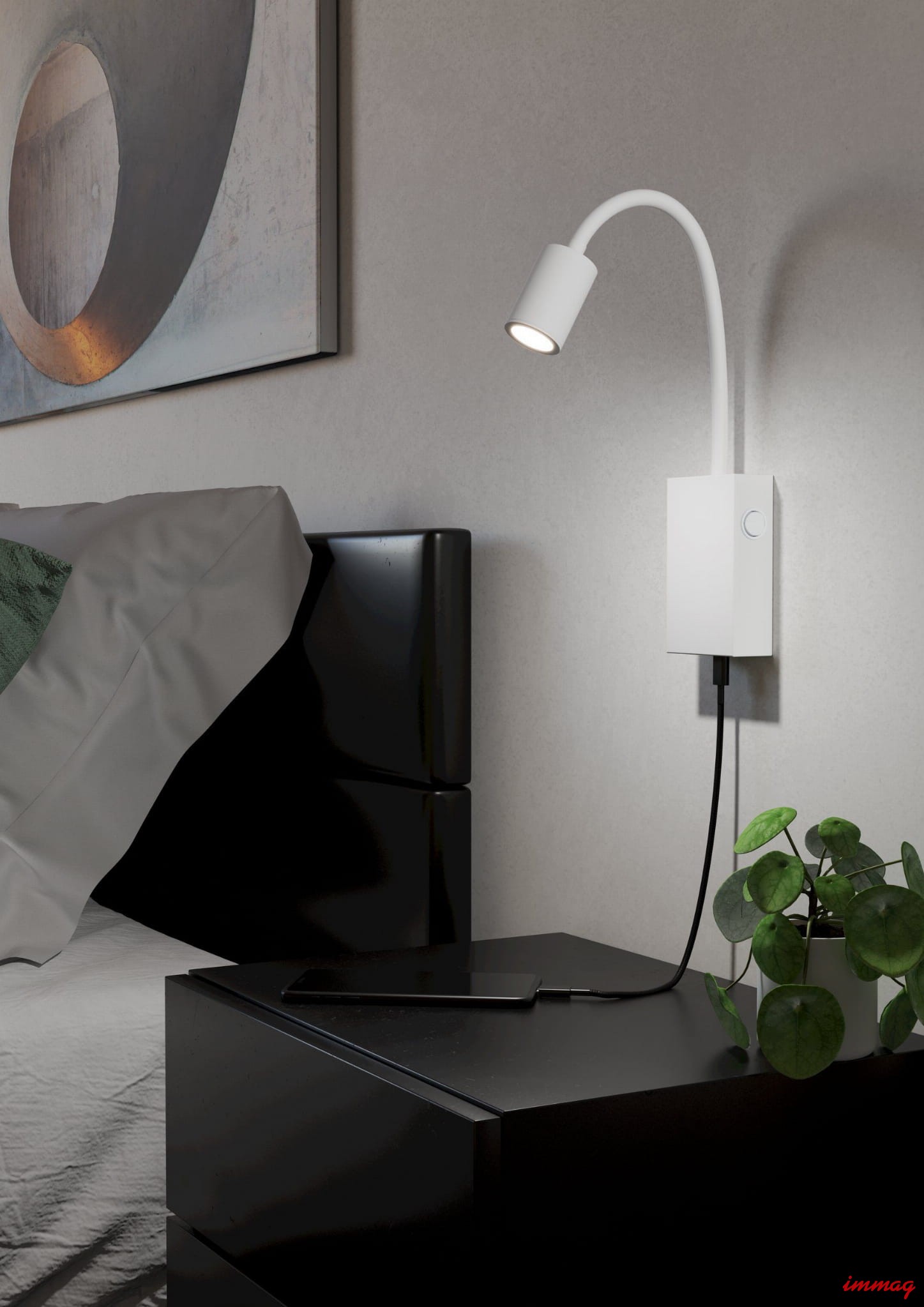 Nowoczesna lampa ścienna wyposażona w trwały i oszczędny led. Zaletą lampy jest możliwość dowolnej regulacji kierunku padania światła, dzięki czemu można łatwo oświetlić potrzebne miejsce. Tazzoli wyposażono również w bardzo praktyczne gniazdo USB pozwalające doładować telefon czy tablet. Kinkiet szczególnie polecany jest do pokoi sypialnianych jako dodatkowe oświetlenie przy łóżku.