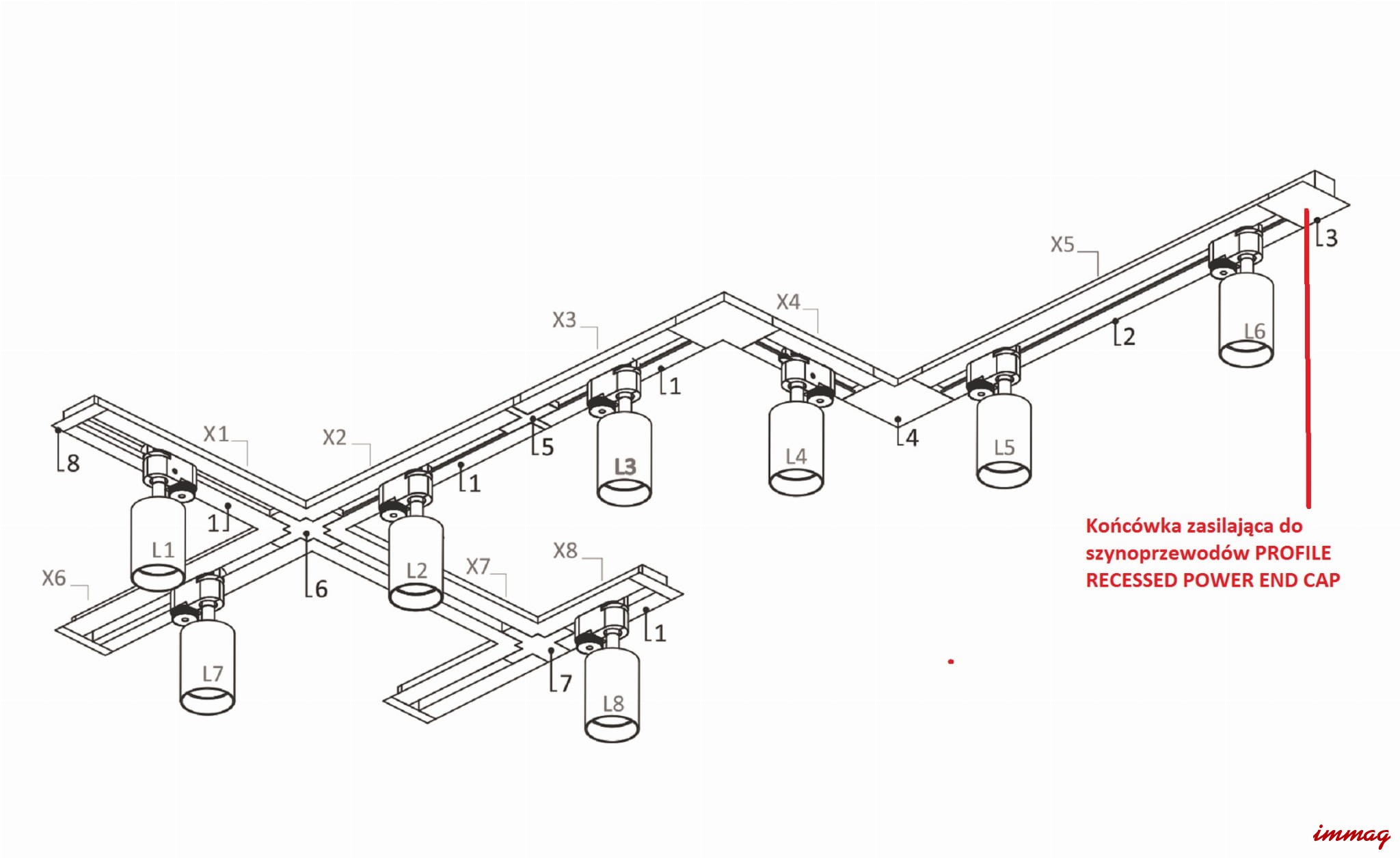 Zasilanie końcowe do szyny wpuszczanej białe PROFILE RECESSED POWER END CAP WHITE 8972
