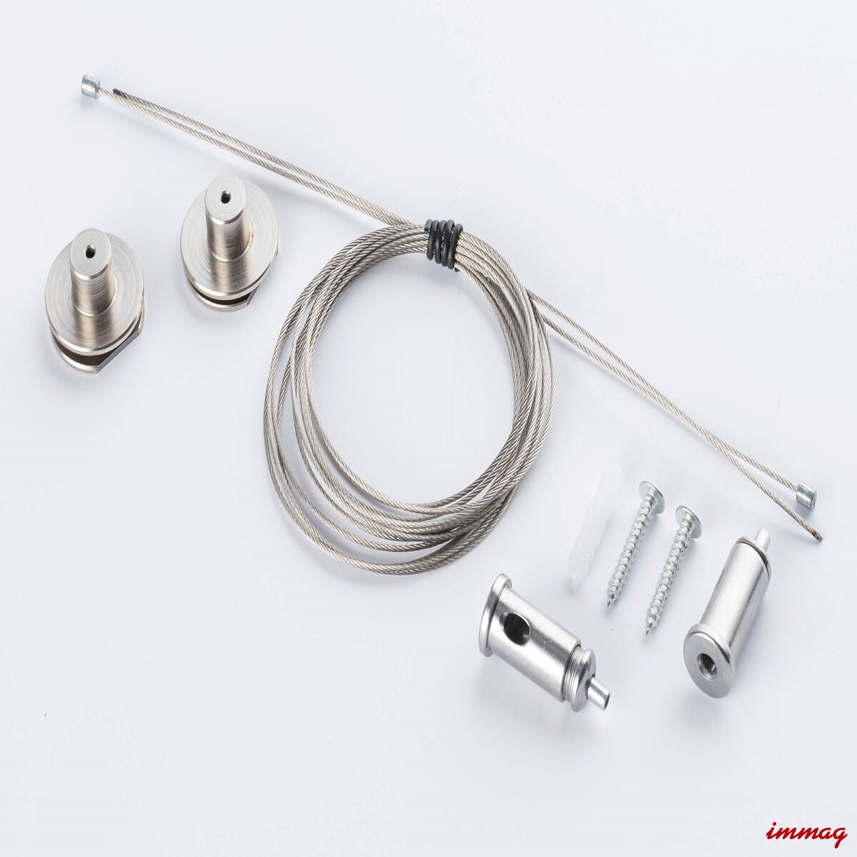 Składa się z 2 linek o długości 150cm, wraz z mocowaniami sufitowymi i łącznikami szyny.