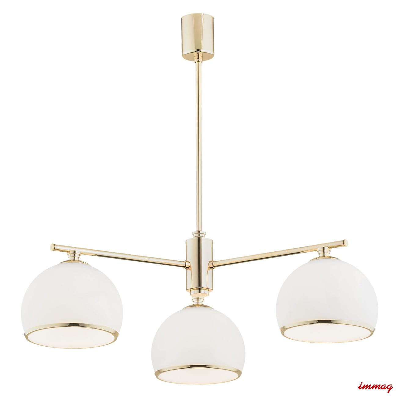 Złoty klasyczny żyrandol na 3 żarówki białe matowe klosze półokrągłe Marbella 1488