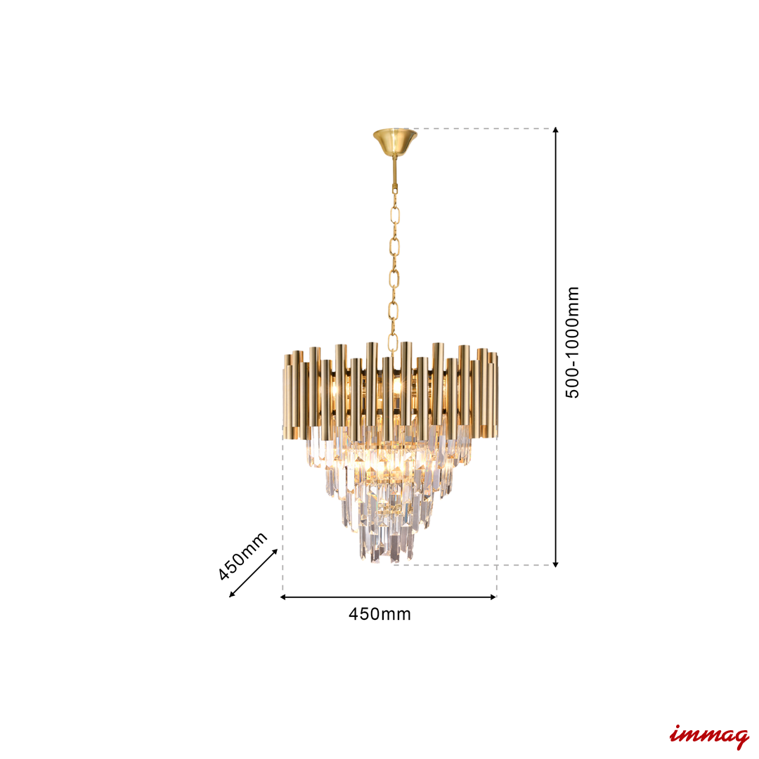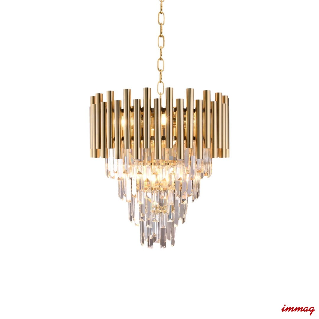 Lampa Madison charakteryzuje się ciekawym designem, który łączy w sobie dwa style. Kryształy wpisują się w projekt o charakterze glamour, a z drugiej strony dzięki zamontowanym dookoła metalowym rurkom nawiązuje do postindustrialnej stylistyki. Lampa Madison została wykonana z wysokiej jakości metalu oraz kryształu. Idealnie sprawdzi się w nowoczesnych przestrzeniach wprowadzając element elegancji i klasy.